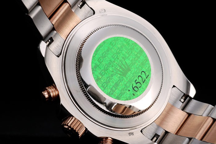 Rückseite: Edelstahl-Snap-In Rückseite mit grünen Rolex Authentizität sticker