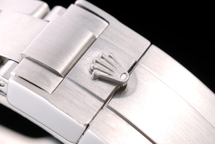 Armband: gebürstetes Edelstahl-Gliederarmband mit gravierter Faltschließe mit Rolex-Logo auf top