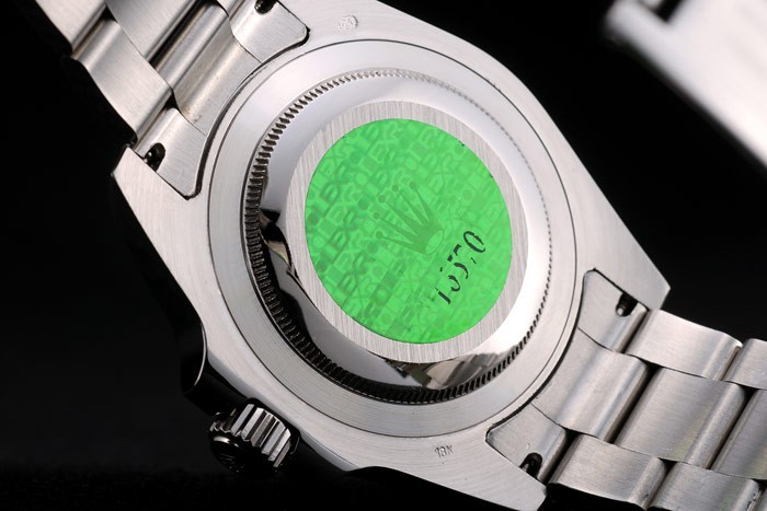 Rückseite: Edelstahl-Snap-In Rückseite mit grünen Rolex Authentizität sticker