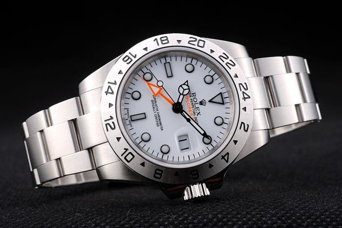 Armband: gebürstetes Edelstahl-Gliederarmband mit gravierter Faltschließe mit Rolex-Logo auf top