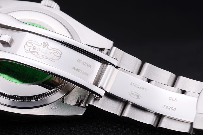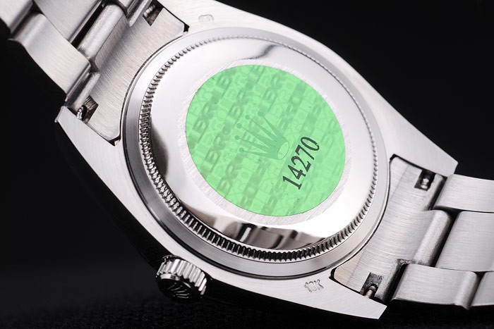 Rückseite: Edelstahl-Snap-In Rückseite mit grünen Rolex-Logo Authentizität stamp
