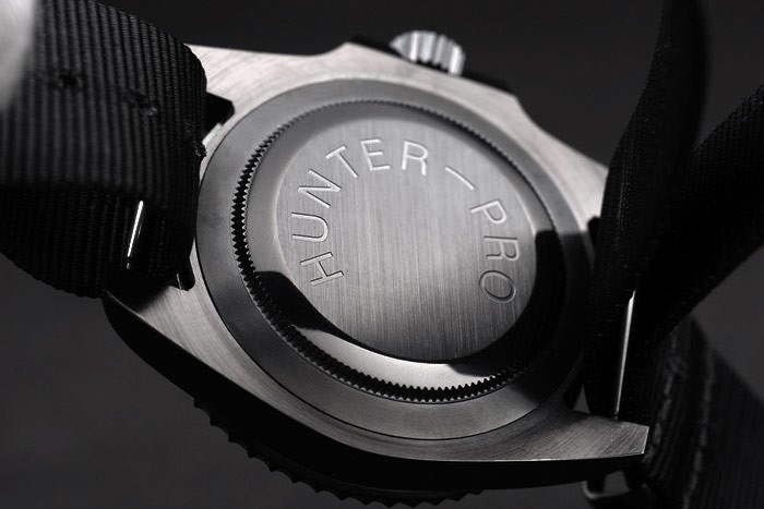 Zurück: ionenplattiert Edelstahl Push-in-Rücken mit Pro-Hunter Inschrift
