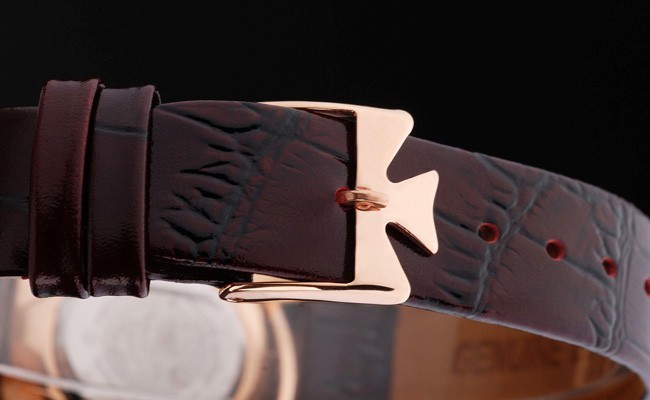 Armband: Reiche kastanienbraun Krokolederarmband mit „Vacheron Constantin“ Aufschrift und Haken Schnalle clasp