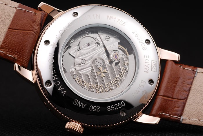Rückseite: Edelstahl Rückseite mit transparenter Mitte verschraubt und Vacheron Constantin engraving