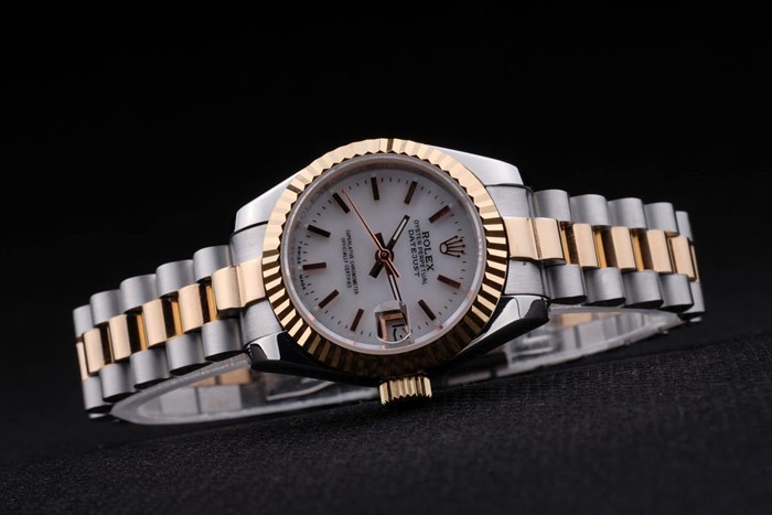 Die Rolex Datejust 4733 ist der Inbegriff von Eleganz und Funktionalität. Diese exquisite Replica-Uhr ist speziell für Frauen konzipiert und vereint meisterhafte Handwerkskunst mit modernster Technik. Ausgestattet mit einem robusten Edelstahl-Gehäuseboden, welcher das grüne Rolex-Logo trägt, repräsentiert dieses Modell die perfekte Symbiose aus Stil und Langlebigkeit. Die Kinetische Bewegung, ermöglicht durch das japanische Miyota Werk, sorgt für eine zuverlässige Zeitmessung, während das polierte Edelstahl-Gehäuse und das luxuriöse Armband aus drei getönten Gliedern mit 18 Karat Gelbgold-Verzierung dem Trägerin unbestreitbaren Charme verleihen.