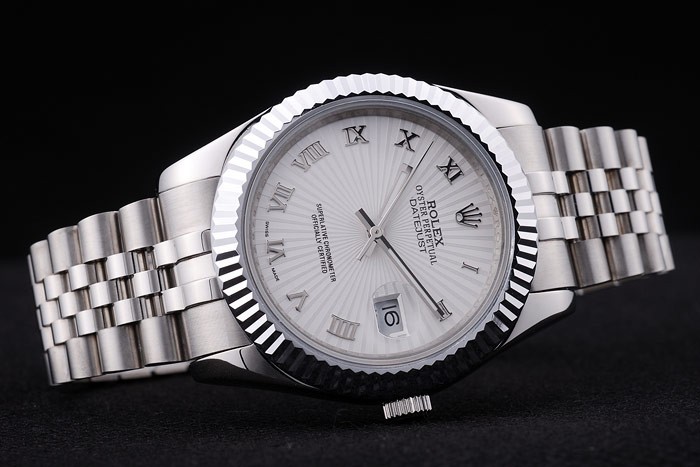 Das Gehäuse der Rolex RL341 besteht aus gebürstetem Edelstahl und das geschliffene und polierte Edelstahl-Gliederarmband mit verstecktem Rolex-Logo clasp sorgt für einen bequemen und sicheren Sitz am Handgelenk. Die Lünette ist poliert und cutwork, während die Krone aus poliertem Edelstahl mit einem Rolex-Logo engraving versehen ist.